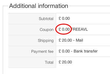 This "strange behaviour" with coupon value being saved as 0 when entered in the frontend, plus the math working in the backend, makes me wonder if there is something, or something else, going "wrong" in the system, not depending on the condition to bring the total of product and coupon back to 0.