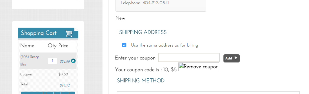 You should not have in the same time the input for the coupon code and the message indicates that you have enter a coupon code.