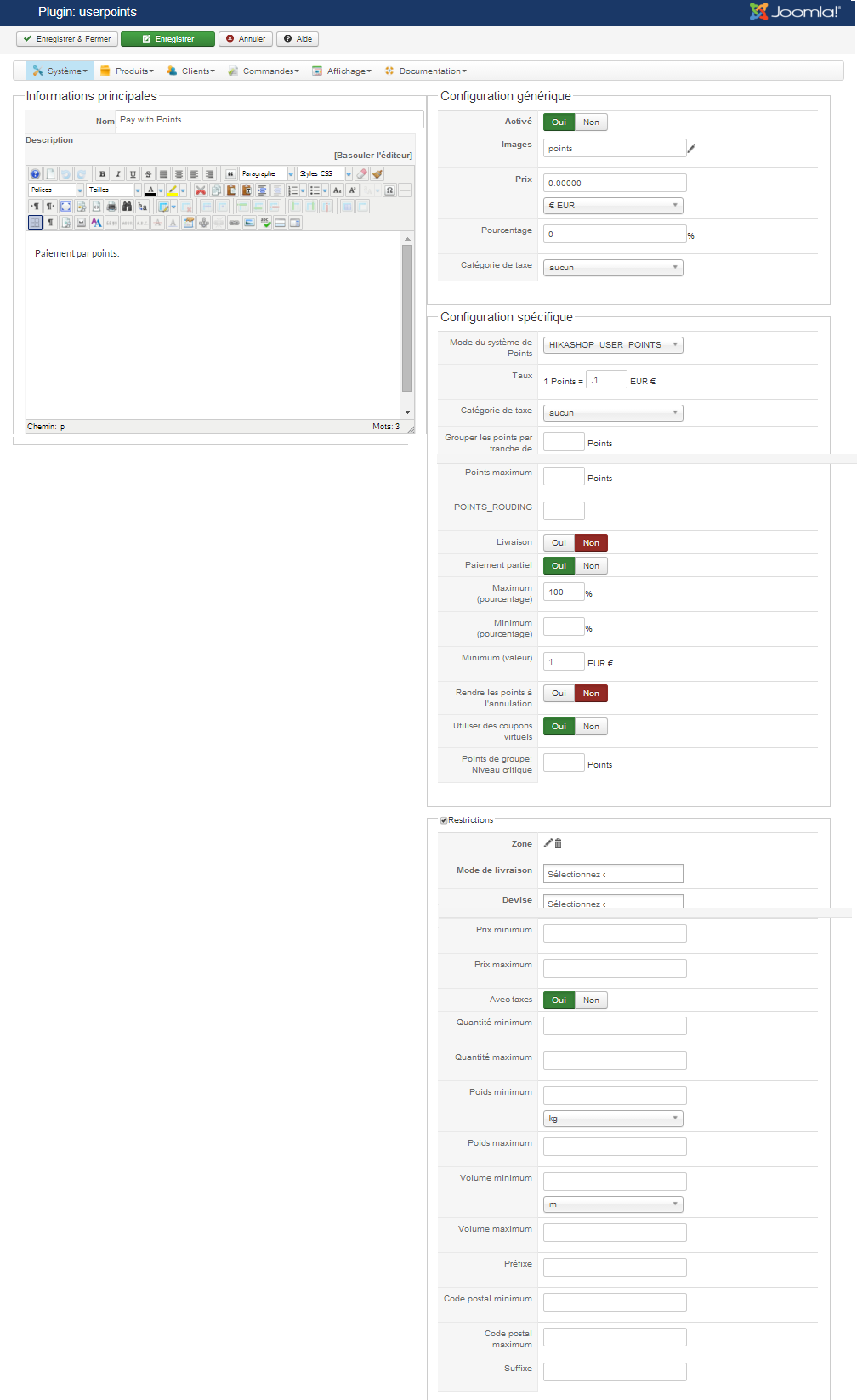 Voici le nouveau réglage du plugin de paiement,