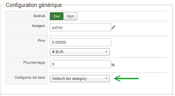 Copie d'écran de la définition de la TVA (= Système > Taxes : 'Default tax category') :
