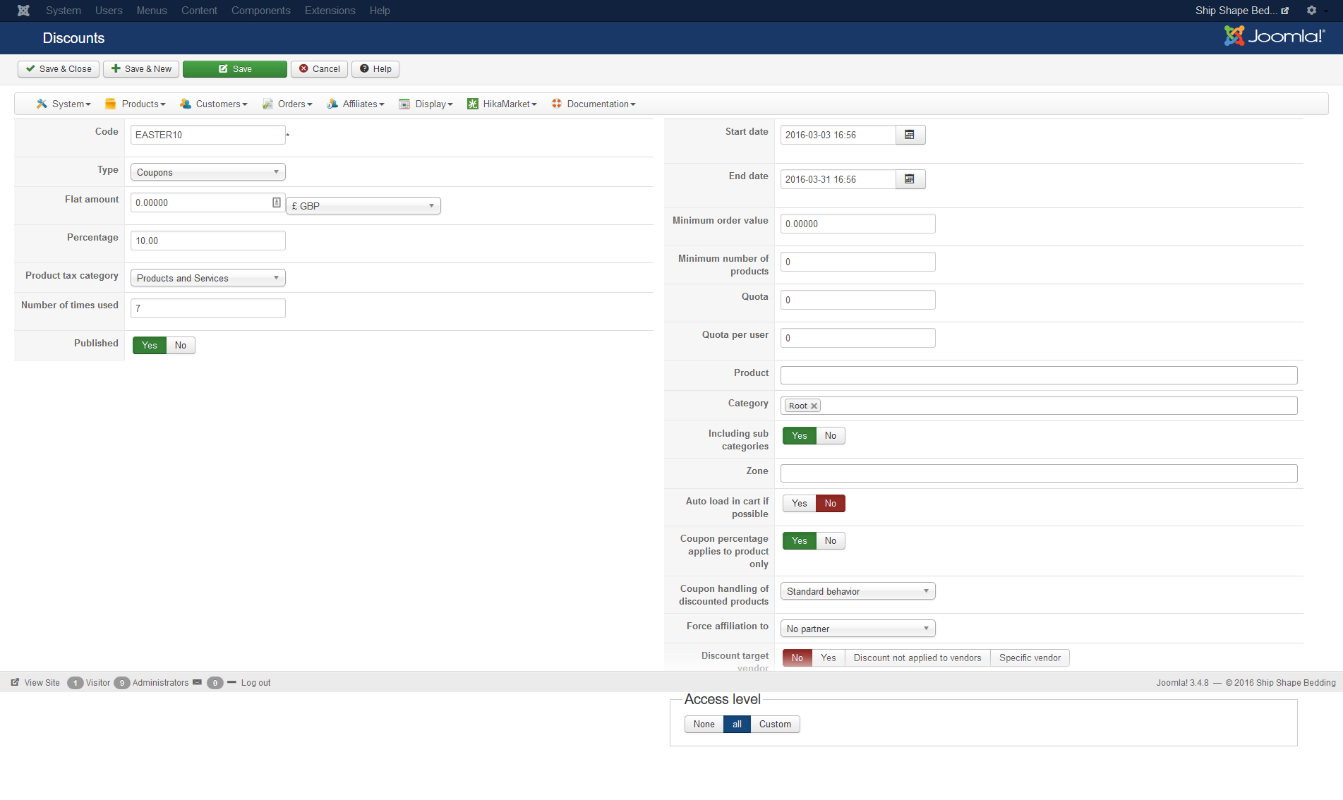 Version: HikaShop Business 2.6.3
