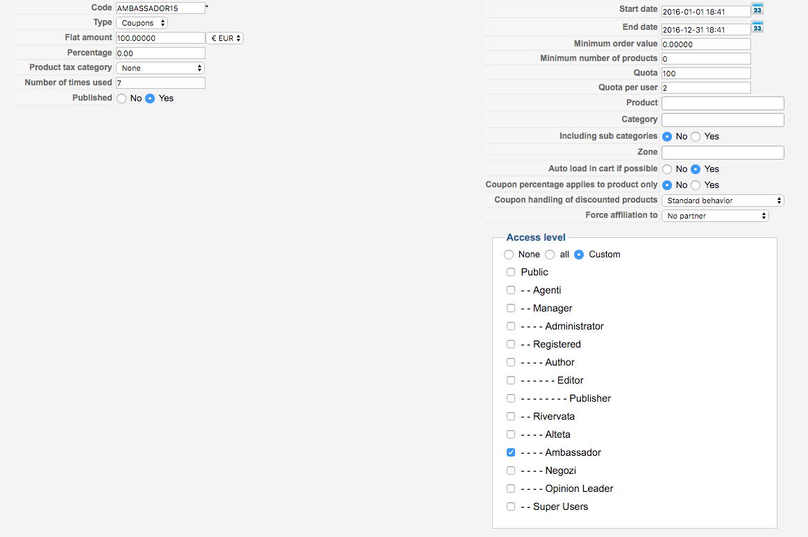 We just added a fix regarding that issue, the solution will be to edit the "administrator\components\com_hikashop\classes\discount.php" file and change that line :