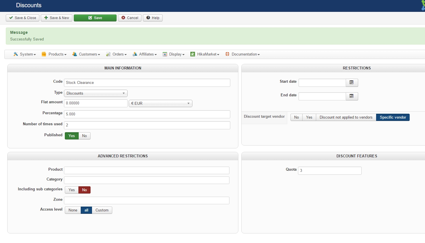 For your HikaMarket questions ; please use the HikaMarket section of the forum.