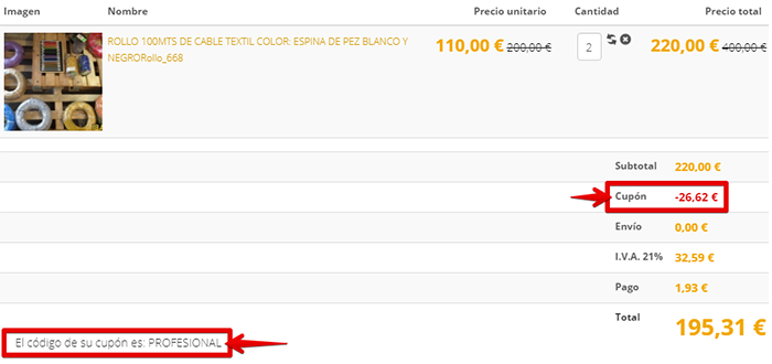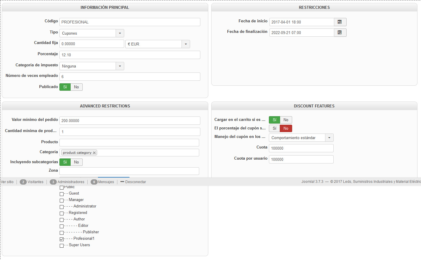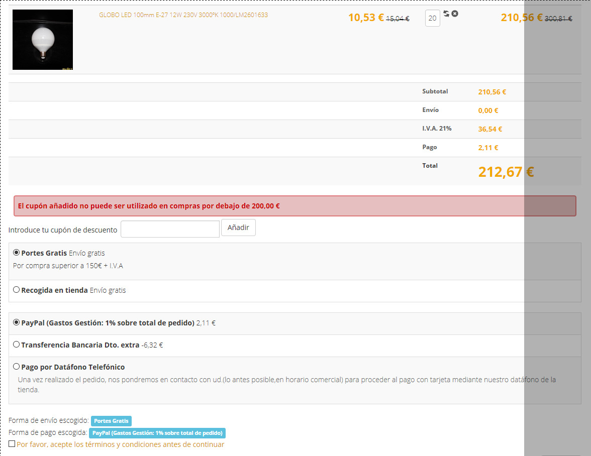 I have a coupon for "Profesional" user and The coupon applies if the sale is over 200 € but does not work well