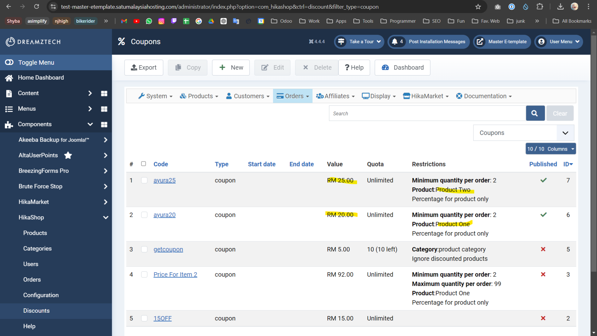 - on our end, we could add the coupon flat value as a last determining factor for the sorting so that in your case, it would properly select the correct coupon. We'll look at adding this on our end for the next version of HikaShop.