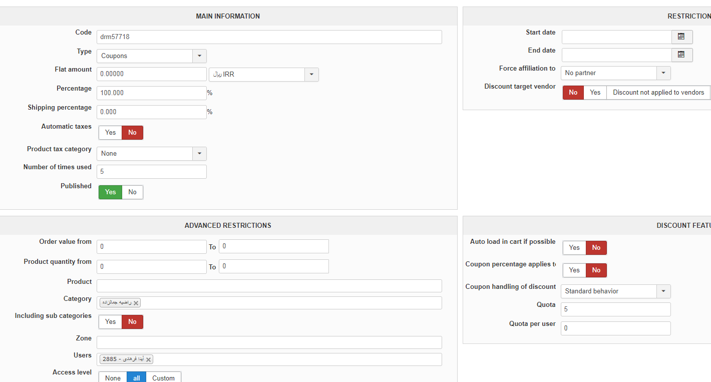 For example, if I create aa coupon with a quota of 5, and there are 3 clients purchasing with it. The "number of times used" goes from 0 to 3. If I edit the coupon and change its value to 2, 3 more clients will be able to use it, for a total of 6 orders, instead of 5.