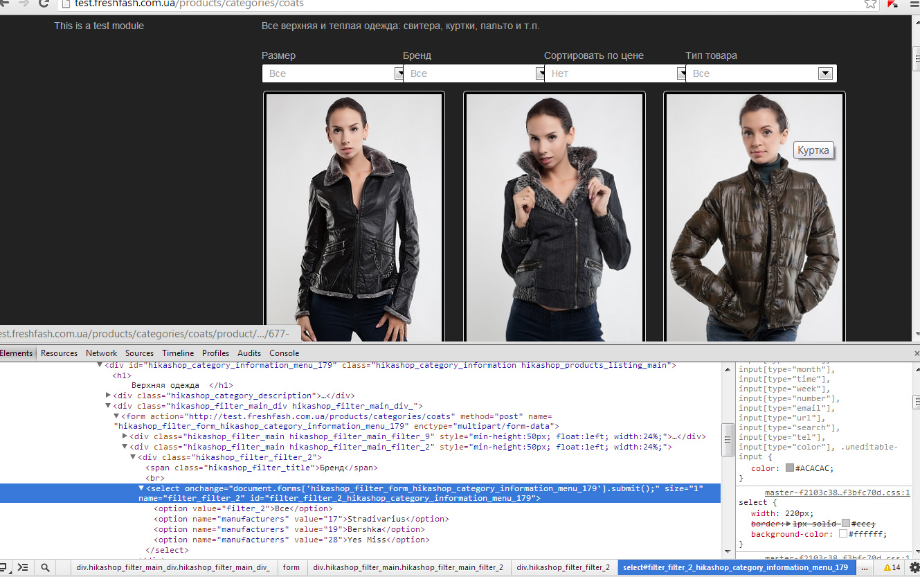 (the screenshot is from my test site, which has smaller width for products module. But I provide the above link just in case you need to see code of filters. The above link has no overlapping filters, but anyway how can I change their width?).