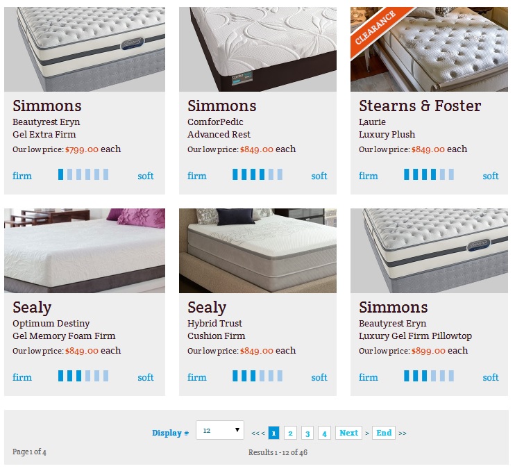 If you apply the filters using the button "Find your Mattress!", you will have a clean url and you will be able to change the pagination.