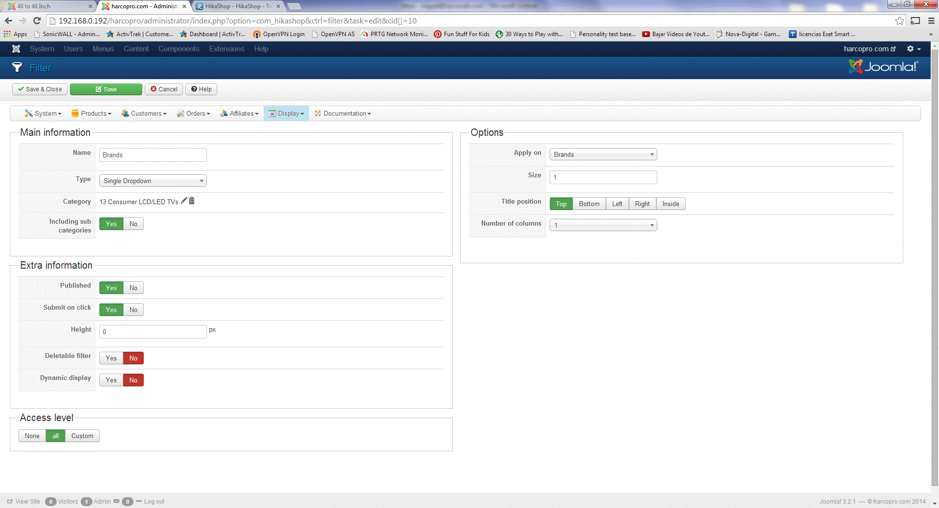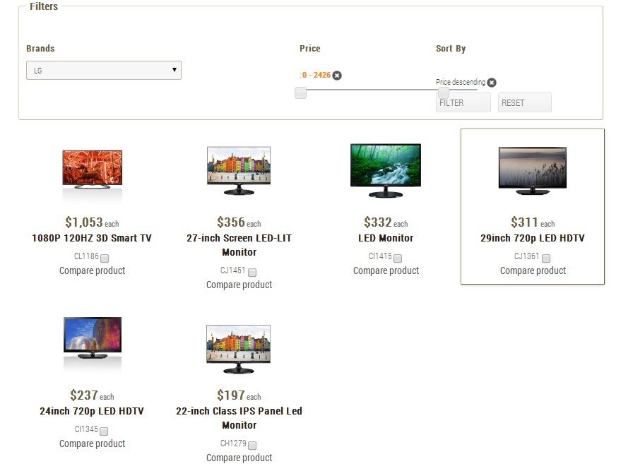 The brand filter is OK, but when I use the sort by filter, I have issues. In Sort By, I can sort by product name with no complications. But, when I add "Price" in the sort, or I just use the "Price" alone, no item appeared. If I put back to show all items, everything appeared again.