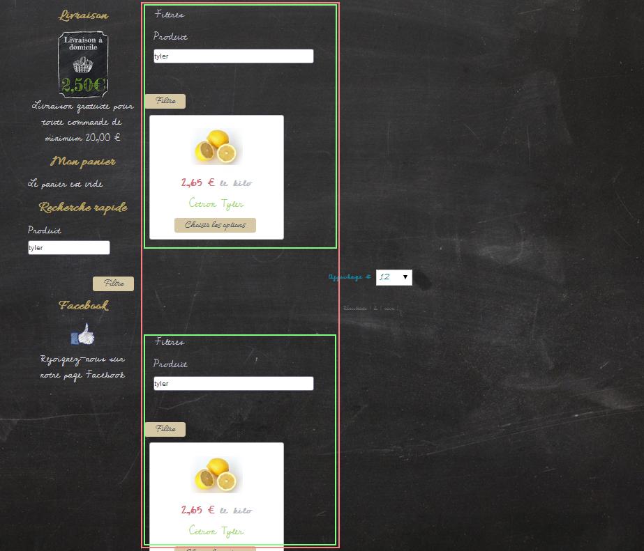 Could you provide a link to the page and a screenshot of the HikaShop options of your products listing menu item ?