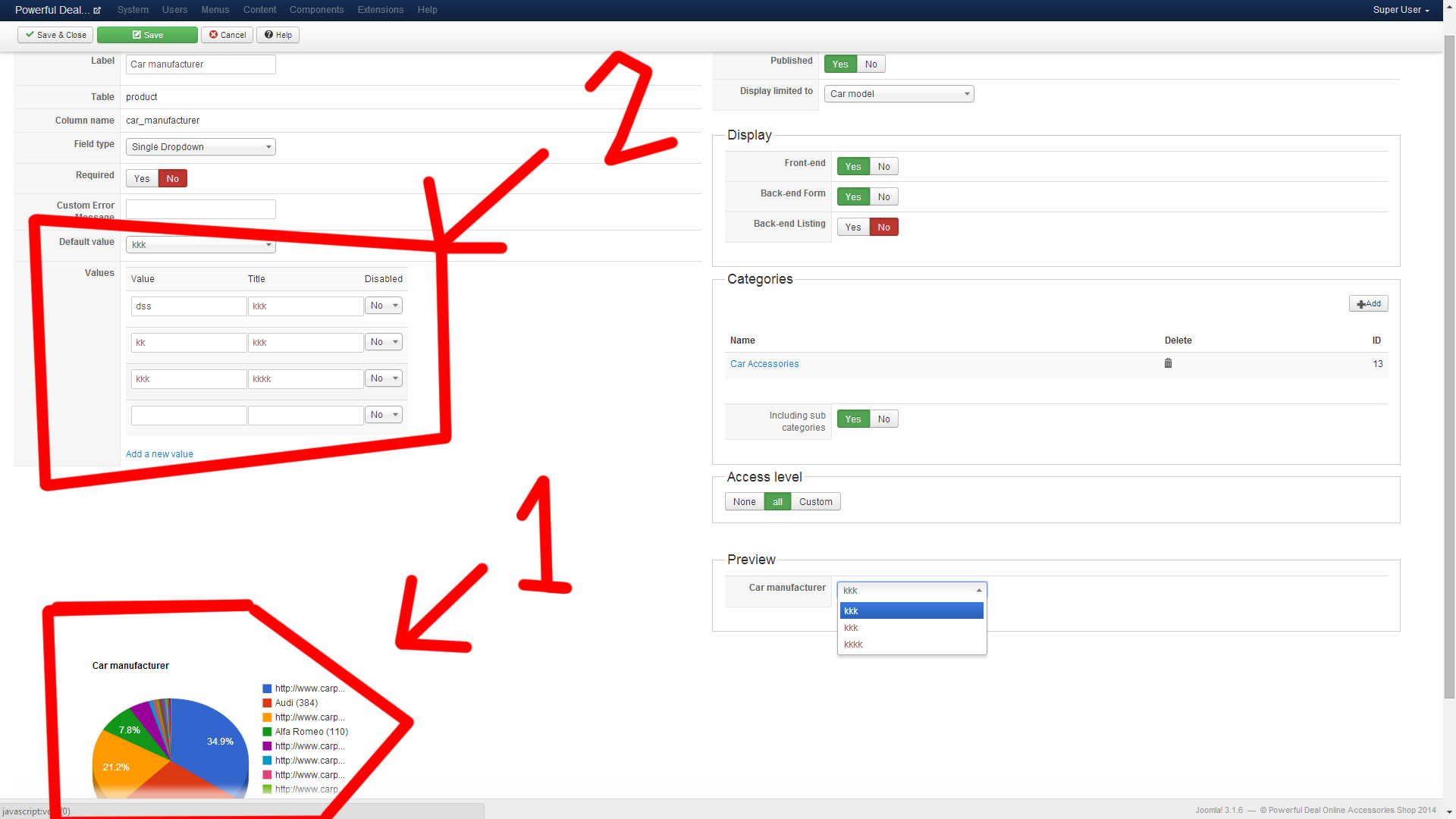 In the first picture you can see the graph which has car makes inside, I want to use them as my values.