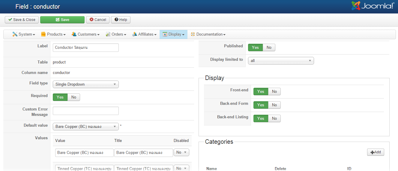 Please note that you need to save the field once with its category selected for the custom fields selector to display custom fields.
