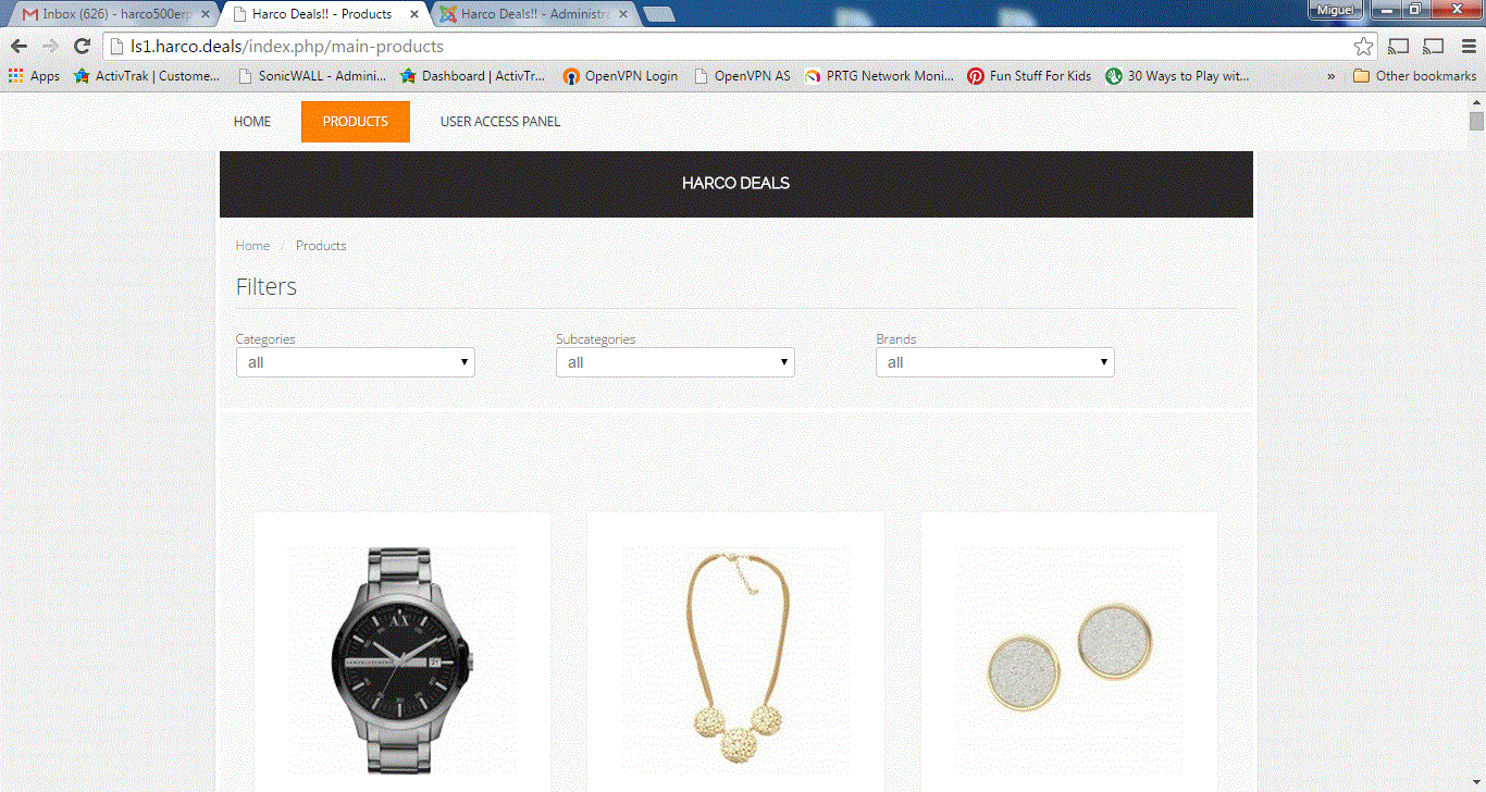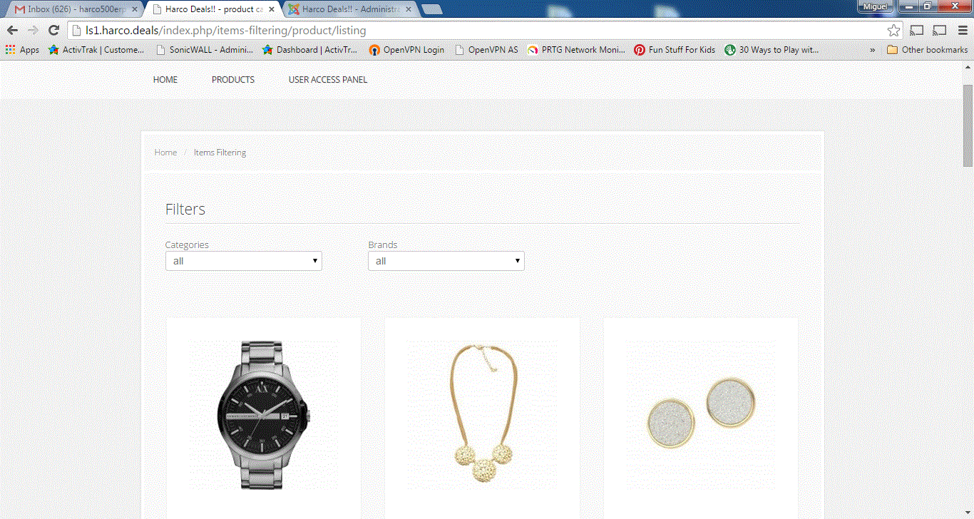 At the beginning I create two filters, one by category>product category, and the other one by brands.