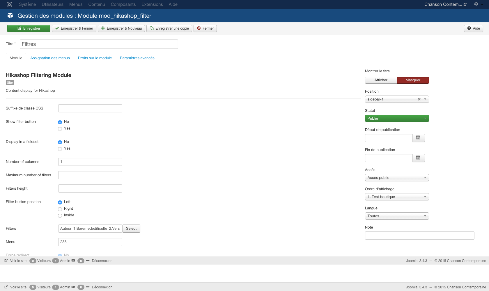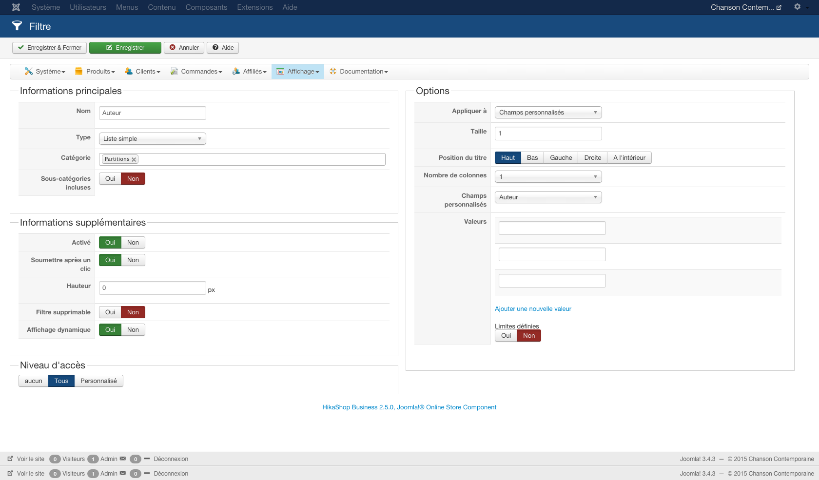J'ai un troisième filtre basé, lui aussi, sur un contenu personnalisé, sous forme de curseur, mais qui fonctionne sans problèmes. J'ai pourtant les mêmes paramètres pour ce filtre.