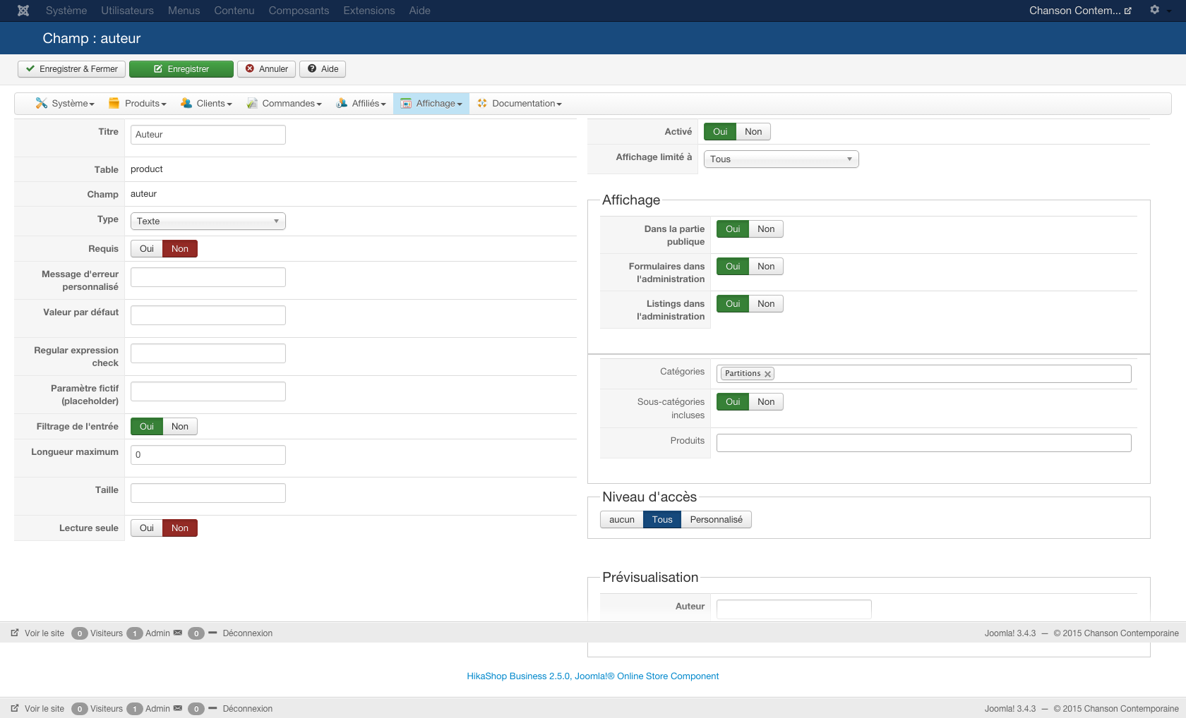 Je vous joins les screen demandés ainsi que celui de la page en question, afin que vous voyez ce qu'affiche les champs personnalisés de type liste simple.