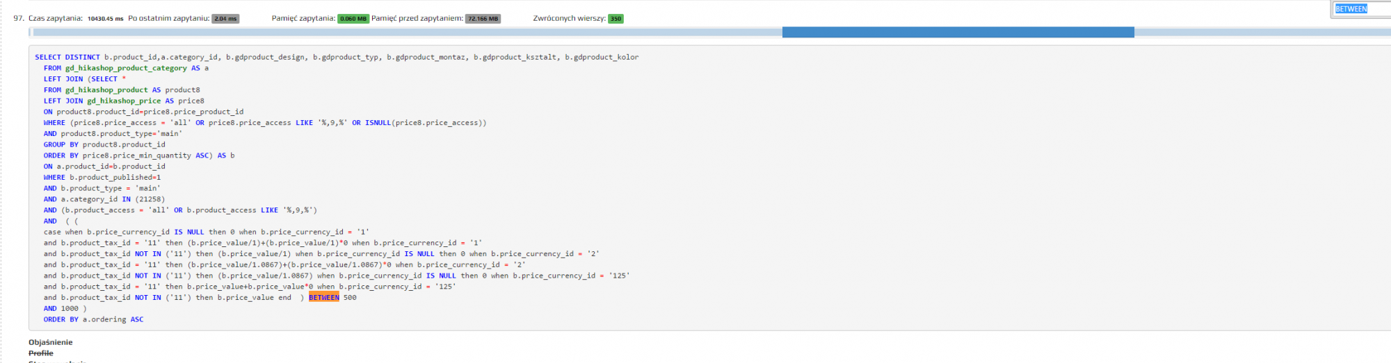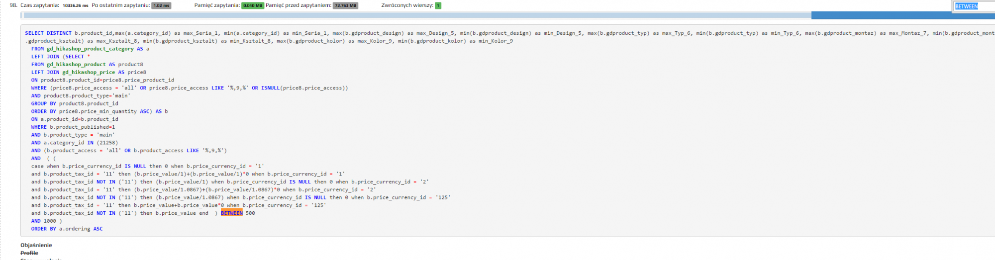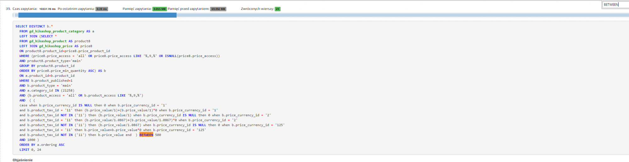 Because of all this, the queries to handle the price filtering/ordering get very slow. Of course, you can simplify them in the /administrator/components/com_hikashop/classes/filter.php file. If you're a developer it shouldn't be a problem.