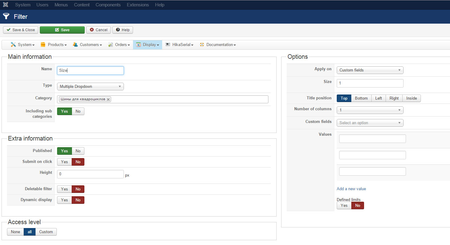 4. Create module (hikashop filter module)