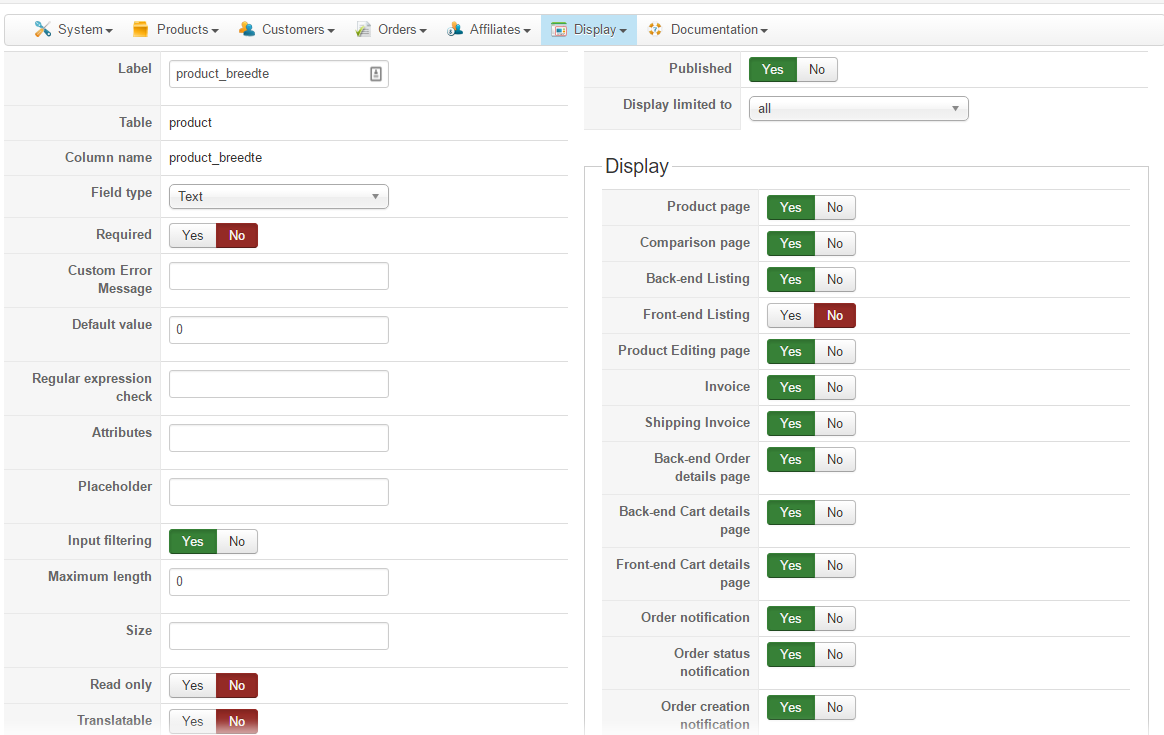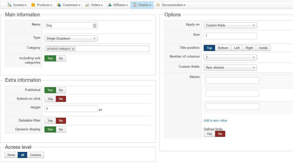 Oke i have put "dynamic display" off, and just want to show the different values from my custom fields.