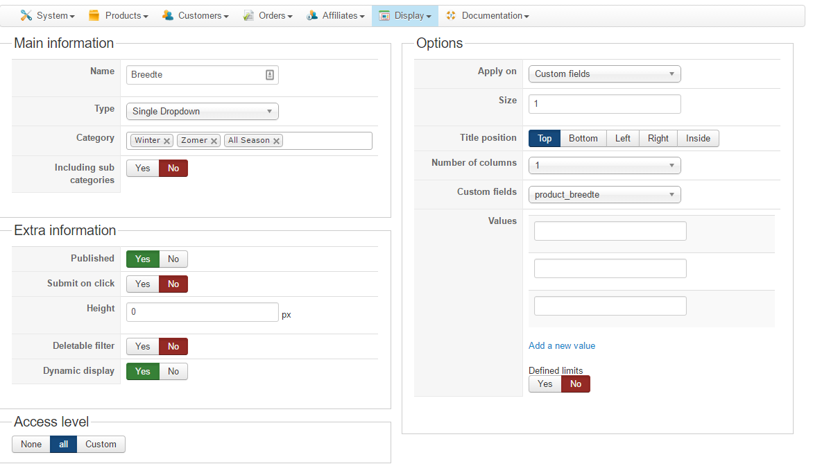 i added a printscreen of my custom field, the filter en here is the link : www.bandenservice-lelystad.nl/assortiment-zomerbanden .