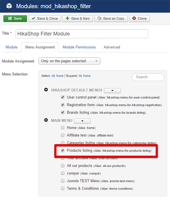 Second step, Use a module with Menu Assignment like on this screenshot and select your required Filter: