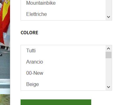 - IMAGE 2: the menu item where is shown the filter module, on the left side of the page. In this page, is possible to see the product of category BICICLETTE