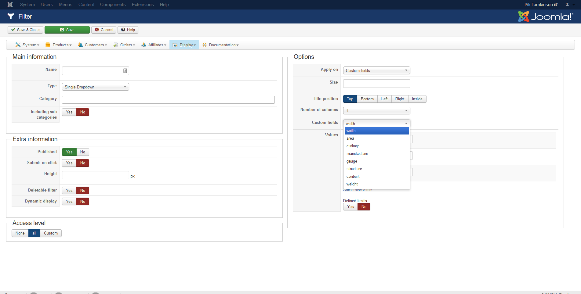If you want restrict the Filter use with this product custom field, the restriction have to be in Filter configuration page.