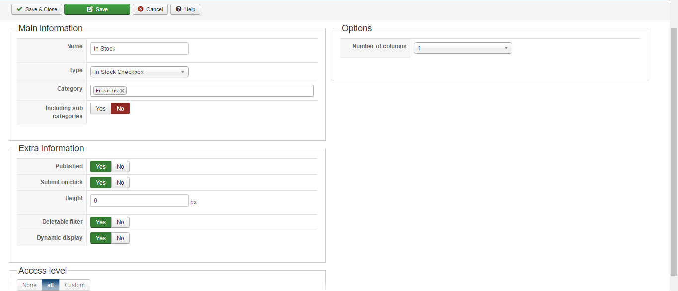 I have a products listing page with filters enabled on it. I have a caliber filter, a sort by filter, and an in stock filter check box. All the filters work except for the in stock check box. I have products that are in stock but whenever I put a check in the check box it filters out all of the products and doesn't display any of them. I've check the settings of my in stock filter, the product/filter view, and the product/listing view and I can't figure out what the problem is. Here's the code of my product/filter view: