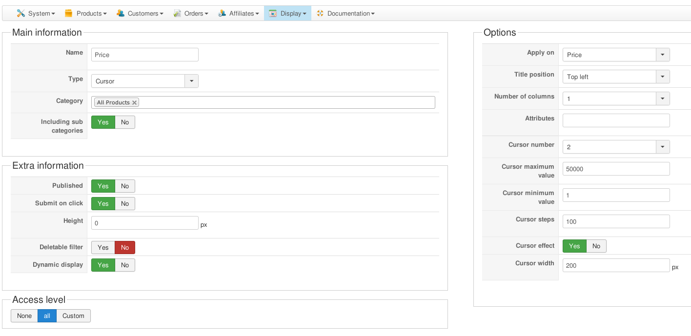 It's as if the file "filter" of the view "product" had been changed to discard the dynamic min/max.
