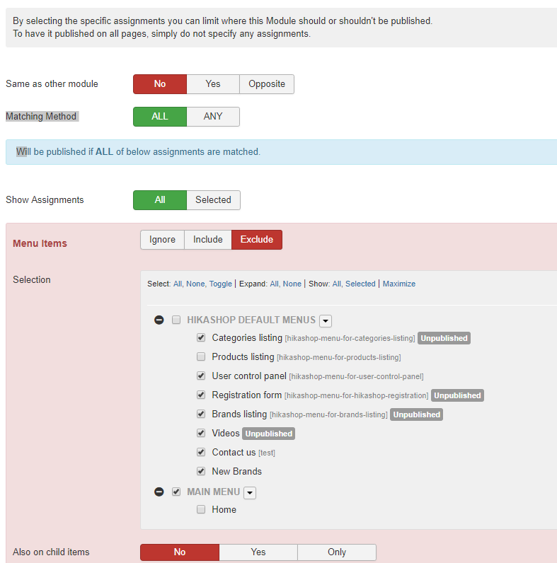Note that this checkbox is to choose if you want the module to display on the menu item "User control panel", not to choose if you want the module to display on the user control panel type pages of HikaShop.