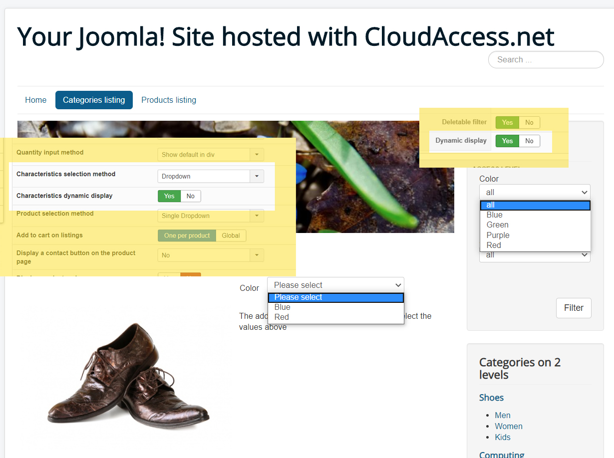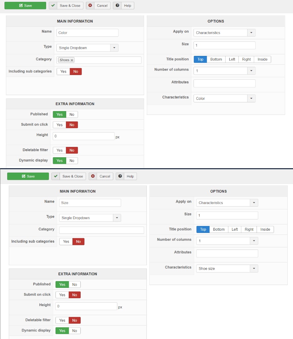 Product Options > Characteristics dynamic display > OK :)