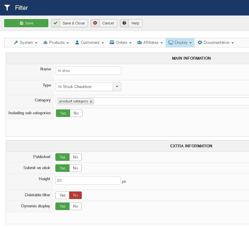 In Stock checkbox, is not visible in front-end