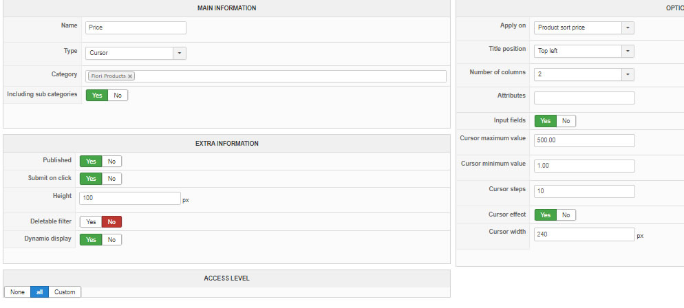 About issue 1: I have set a price filter with attached settings. In the frontend when choosing a price by moving the slider/cursor, the filtering is performed correctly but the slider returns to its previous position.