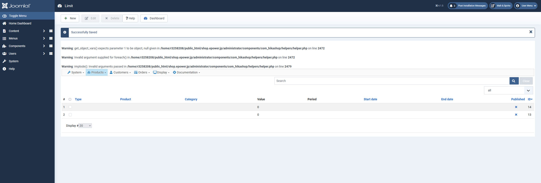 Warning: Invalid argument supplied for foreach() in /home/........../administrator/components/com_hikashop/helpers/helper.php on line 2472
