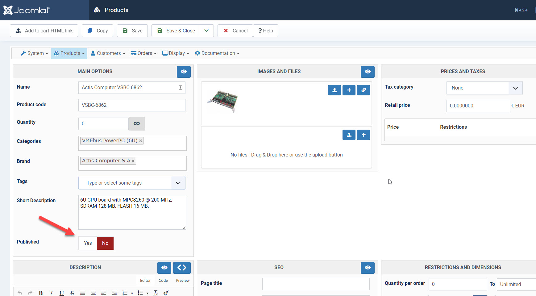 Could you provide a screenshot of the product "VSBC-6862" settings ?