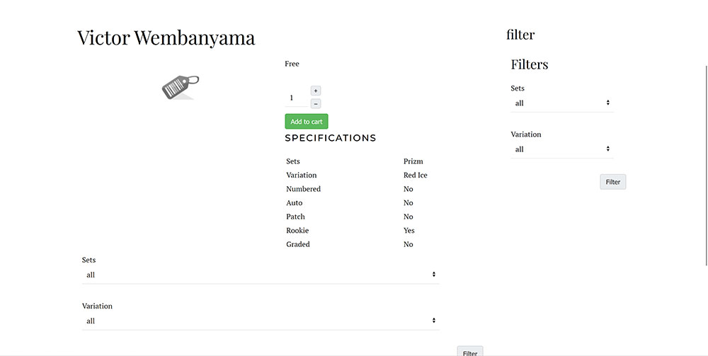 - Since you've selected the Cards category in your filter, the filter won't appear on the frontend on any page where the main area isn't displaying the products of that category. So, if you're displaying a listing of all the products under the main category, the filter won't appear on the listing. If you want it to appear there, you need to remove that category restriction.