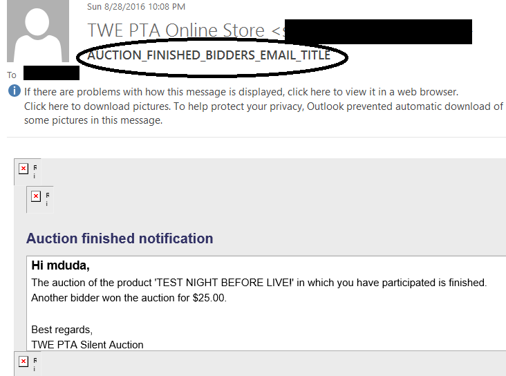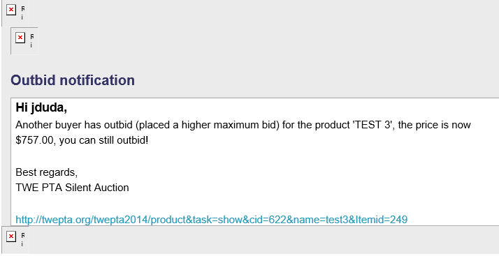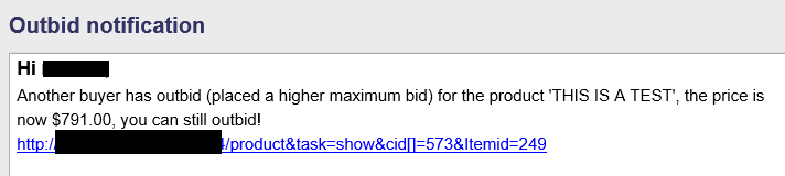 - Edit the "HikaAuction : Auction outbid notification" email