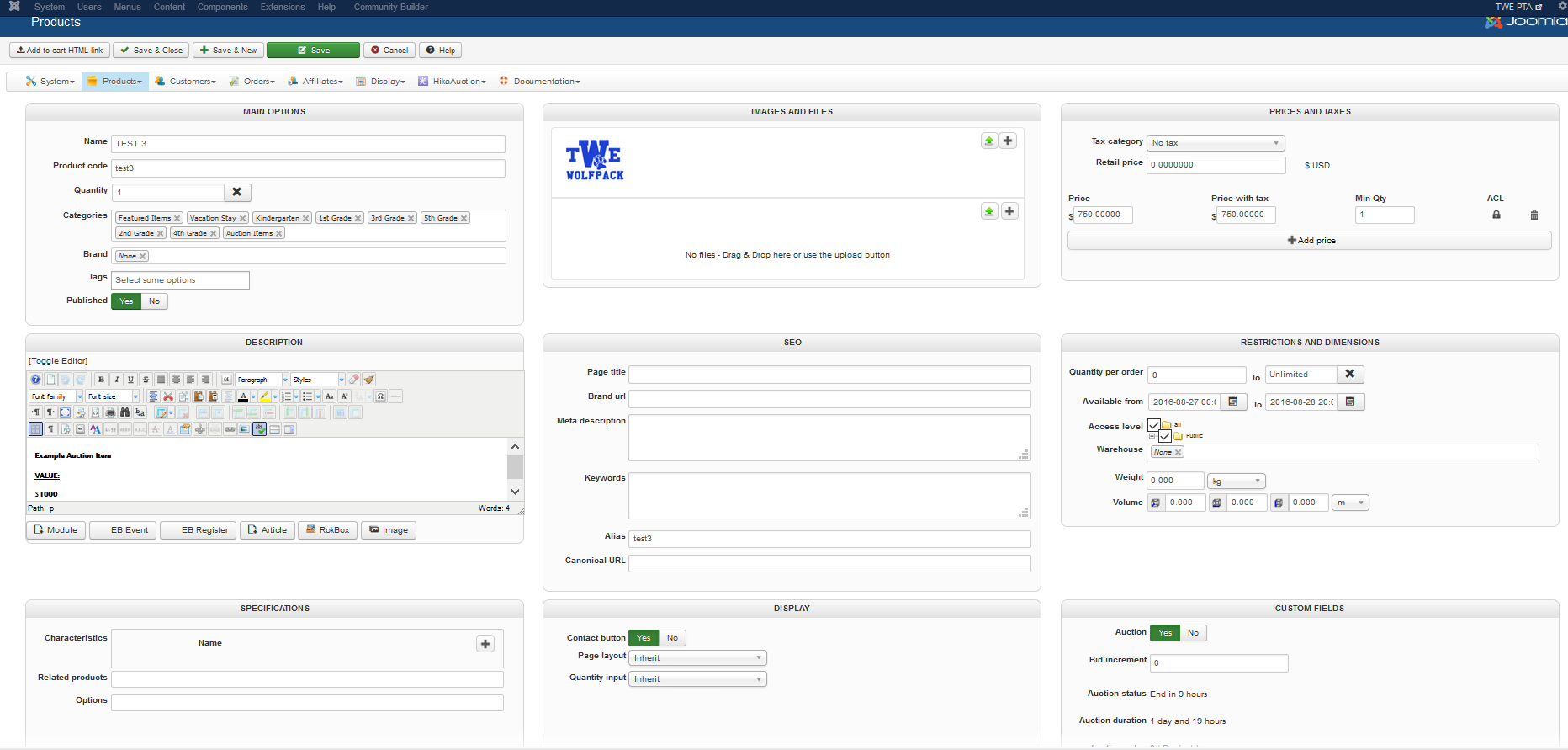 Actually we already fixed that issue through the last HikaAuction version, you'll just have to download it through our website, and install it.