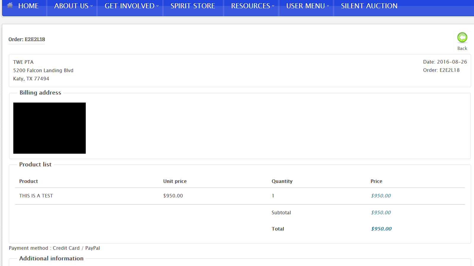 I select proceed to checkout, then I see a list of orders (previous orders as well as the new auction w/"created" status). I click on the auction item and am taken to the details of the order.