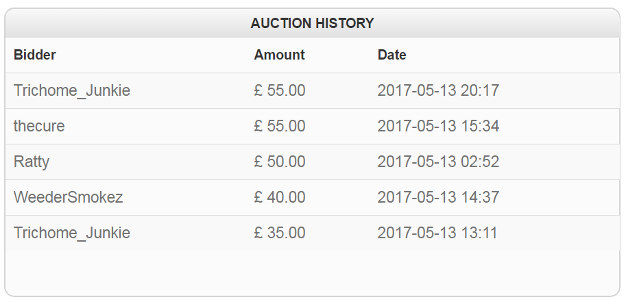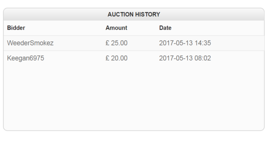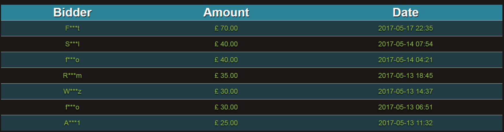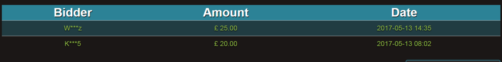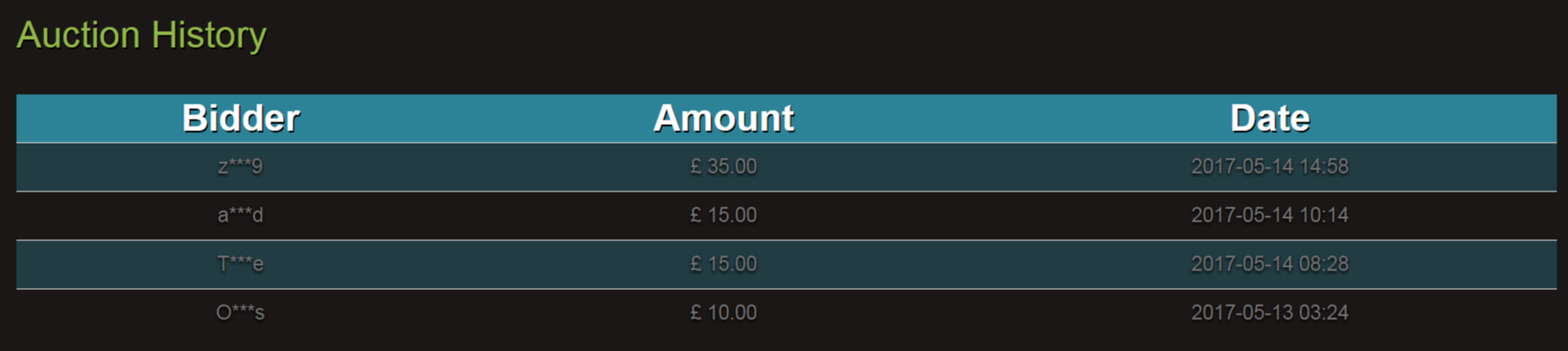 Also how come the 3rd bidder is the same as the second? Also if it is set at increments of 5 then why does it go from 15 to 35 in the auction history?