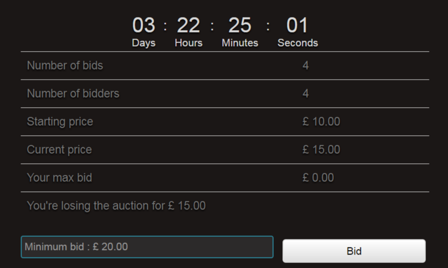 I started this product at £ 10.00 and it has 4 bids with an increment of £ 5.00. Why is it still at £ 15.00 with 4 bidders?