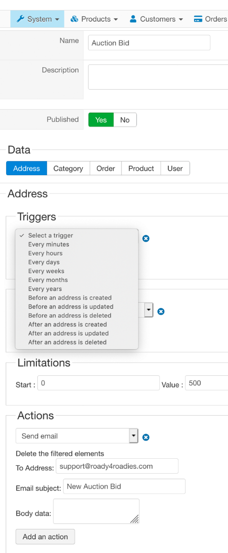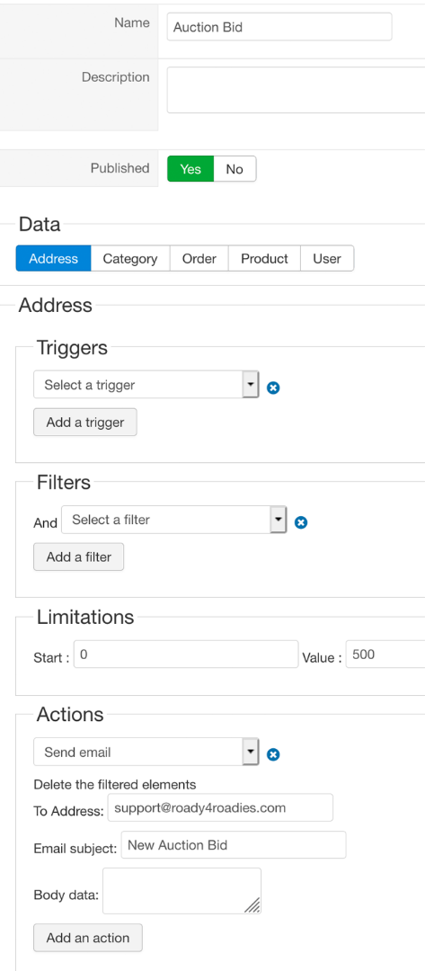 But emails actually can't be sent without HikaShop's cron, that's why we're working on an HikaAuction cron.