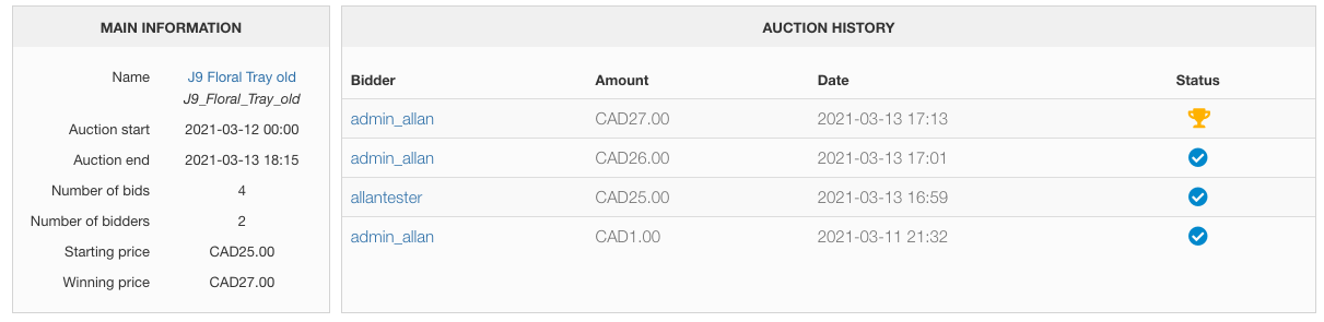I am noticing that when a bidder receives a notification when they are outbid, the part where it reports the current price is one bid behind. For example if my previous bid was $25 and the competing bid was $26, the email tells me "An other buyer has outbid (placed a higher maximum bid) for the product 'J9 Floral Tray',the price is now CAD25.00, you can still outbid! ".