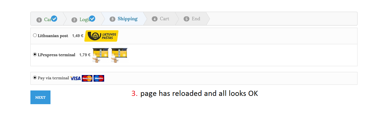 Only one thing what helps is to press button next, then all page refreshes and it shows as it should be. Then you can press button next again to proceed to next step....