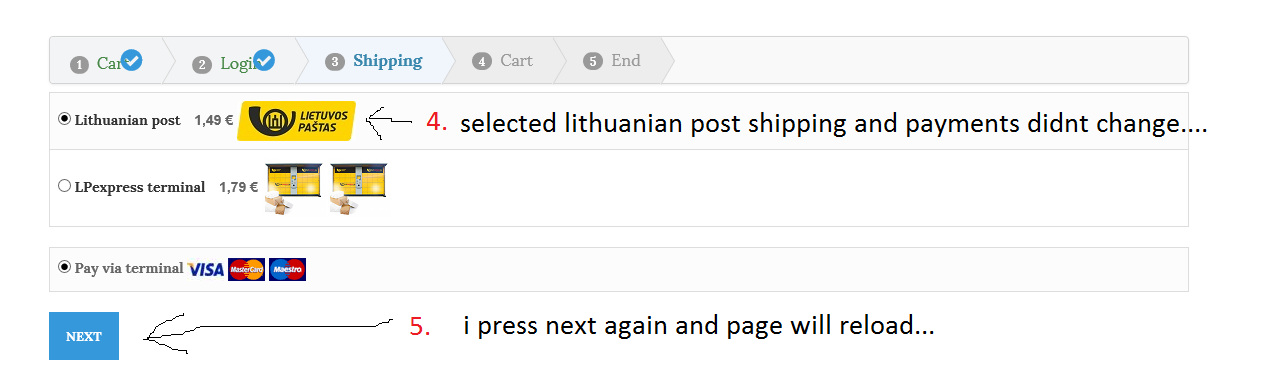 2. As I said in my previous message I have some issues with payment method restriction to shipping zones. As example I have restricted one payment method to show only if 1 shipping method selected. When I select that shipping method, shipping div refreshes but payment methods does nothing. If I try to select one of payment method which shouldn't be seen it does nothing. Its like selecting checkbox....