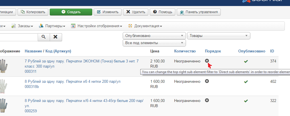 Столкнулся с таким вопросом. Не могу изменить порядок отображения товаров с HikaShop скриншот прилагается.