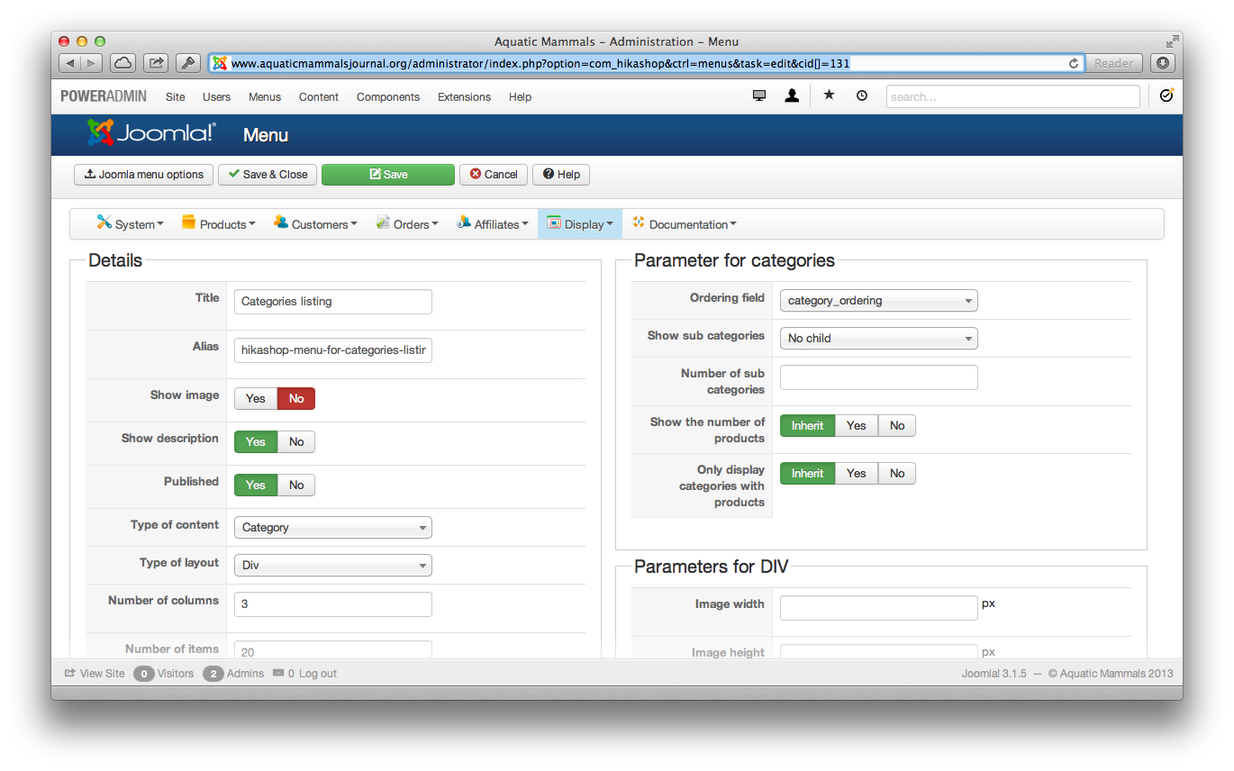 I am not trying to display the description of each product in the category listing. I am just trying to display the description of the category. In my example, the module is called "Shop". The categories in there are: Articles as PDF, Historical Perspectives and some others. These are all defined as categories, not products in hikashop. Each one of these categories has a description field. I have entered the description for Historical Perspectives to test out how to display it. However, I cannot see how to display the description of this category on the front end. When you click on the category in the module in the front end, isn't the description supposed to show up? I have it to where the title shows up and all the products under this category show up. I don't need the description of each product (which as you pointed out can be displayed by selecting "image and description" in the div under default parameters for categories). I need the description of this category to show up on top. The description is there in the back end, so there must be some way to display it on the front end, correct?