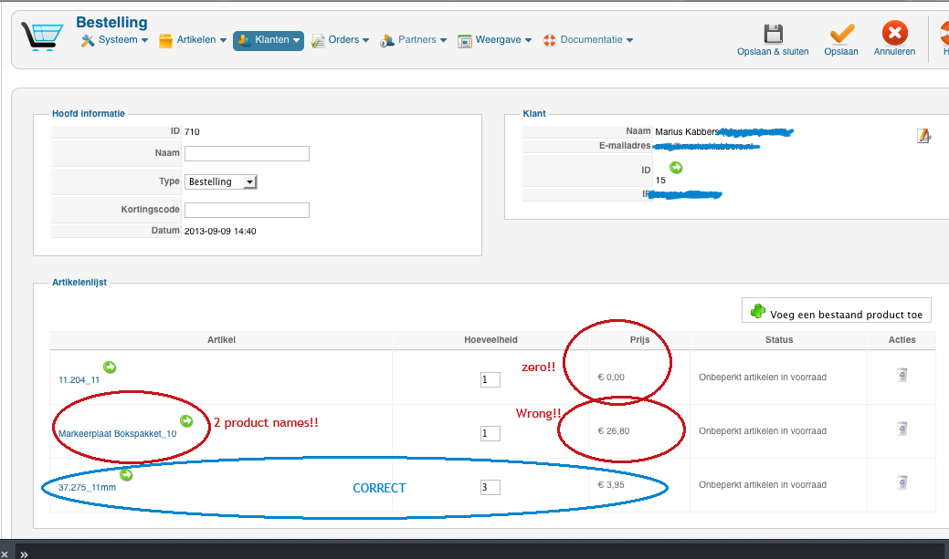 But in the "cart" is all information not trustful. 1. When we click the pensil for user whe become the info of a other customer. 2. when we click the pensil of the "product list" products are not correct and prices are € 0,00