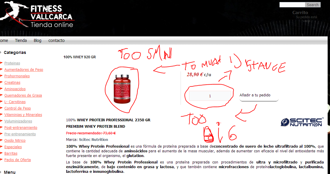 the problem is tha on the product layout as you can see the cuantity frame ist too big and the image of the item ist to small, and all details have to much distance between them.