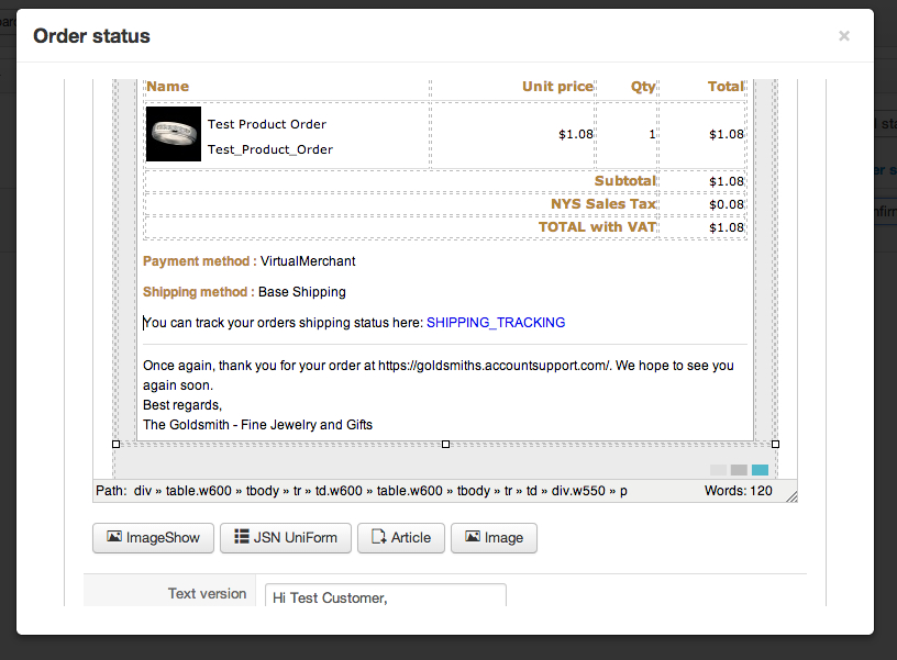 Also, I did try to add code to the email template, but when I go into the order section and choose to change the status from complete to shipped and the popup comes up with the email template, I can see where my code is but it does not seem to be picking up the data?
