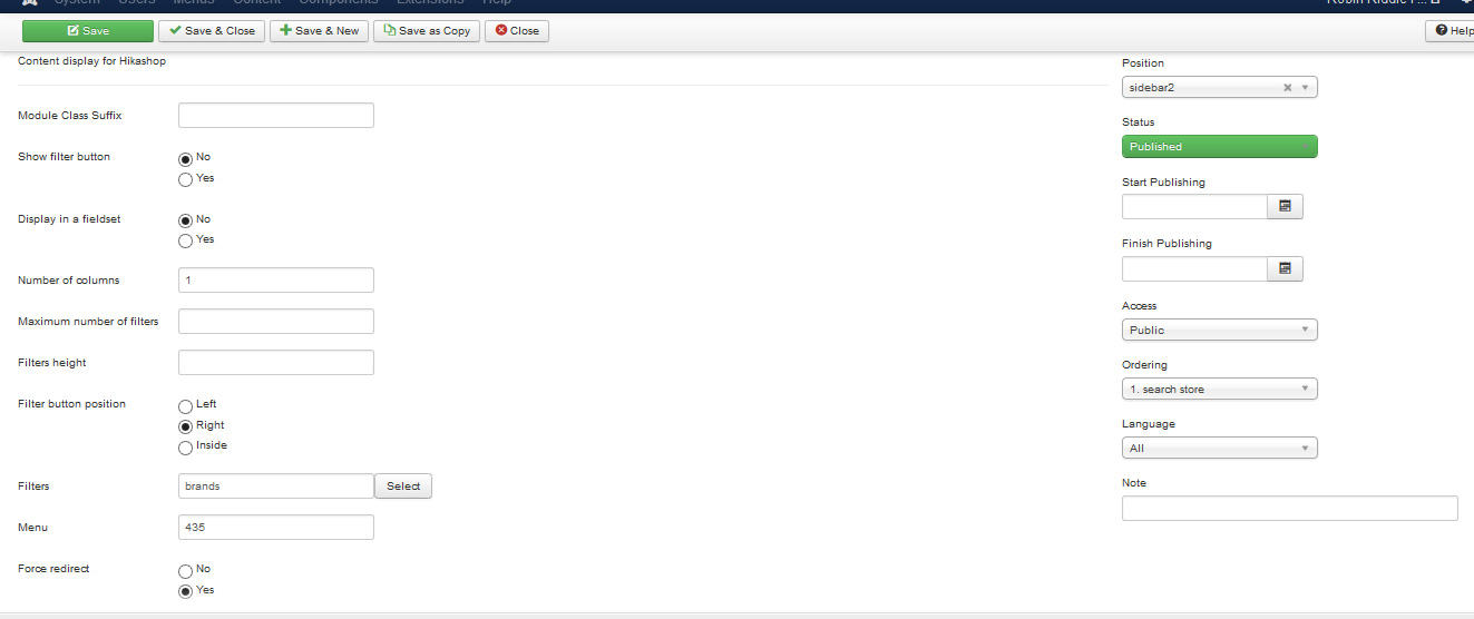 You have such module displayed under the category listing menu ; but you do not provide his configuration (which is available just below the category listing menu configuration page).